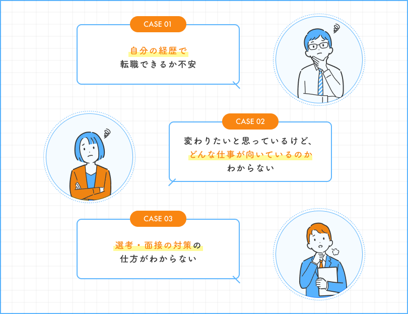 経験豊富なアドバイザーが、あなたのキャリアに関するお悩みやご希望をしっかりと伺い、